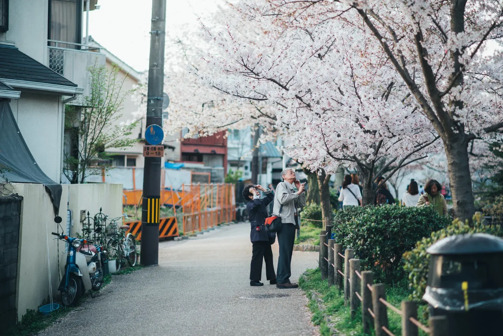 哲學之道(哲学の道),一直是京都春季賞櫻的經典代表,2025年這裡更因「花況穩定+周邊賞花新亮點」再度被日本旅遊媒體列為關西必訪賞櫻步道TOP3。這條全長約2公里的運河小徑,兩側種滿超過400棵染井吉野櫻,每年3月底至4月中旬,今年花期預測是3月28日~4月12日(最佳滿開期:約4月1日~5日)櫻花滿開、粉雪飄落,簡直美到像一幅會動的春季畫卷。潮旅也要給旅人追花貼心提醒:由於2025年暖冬機率偏高,花期可能比往年稍微提前2-3天,想拍滿開花海的人建議3月底就要進場卡位。