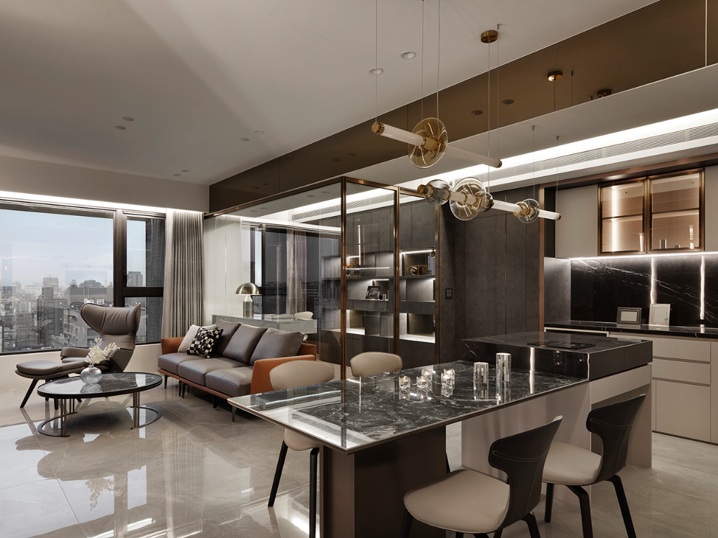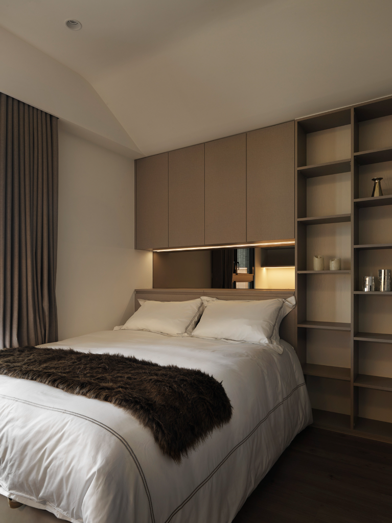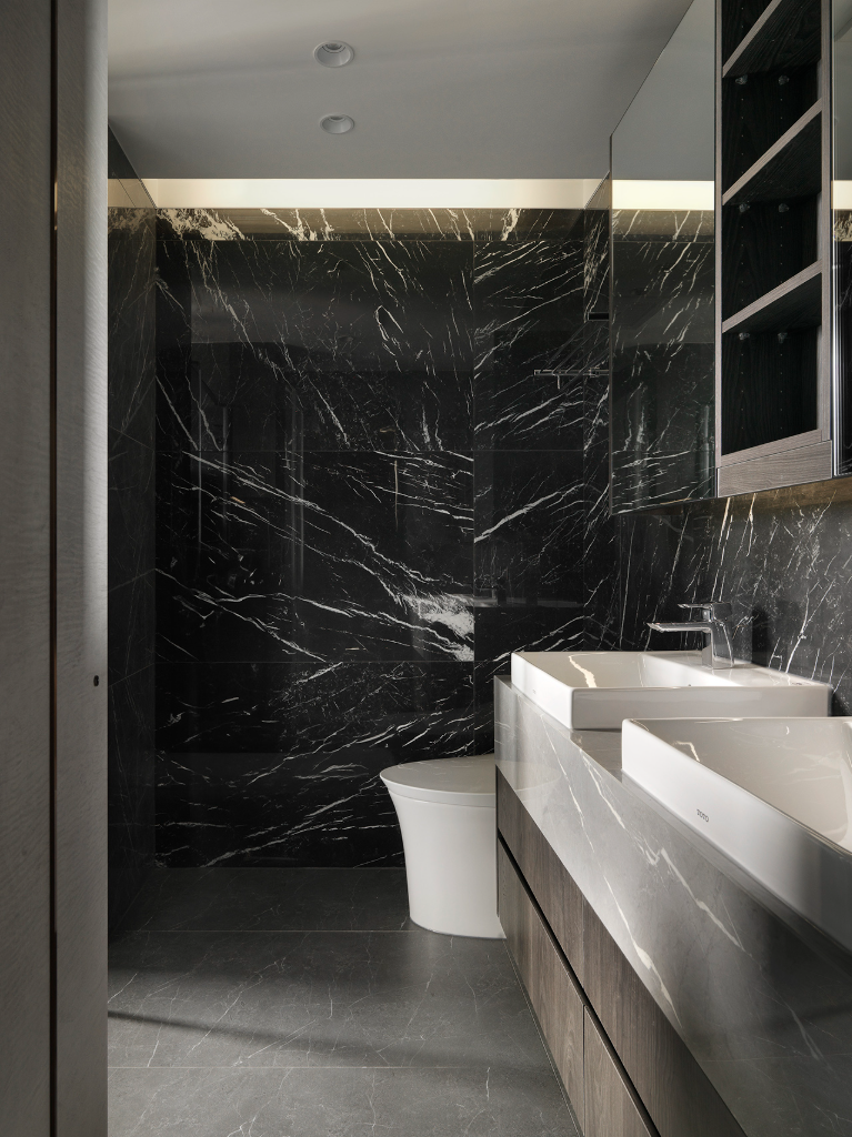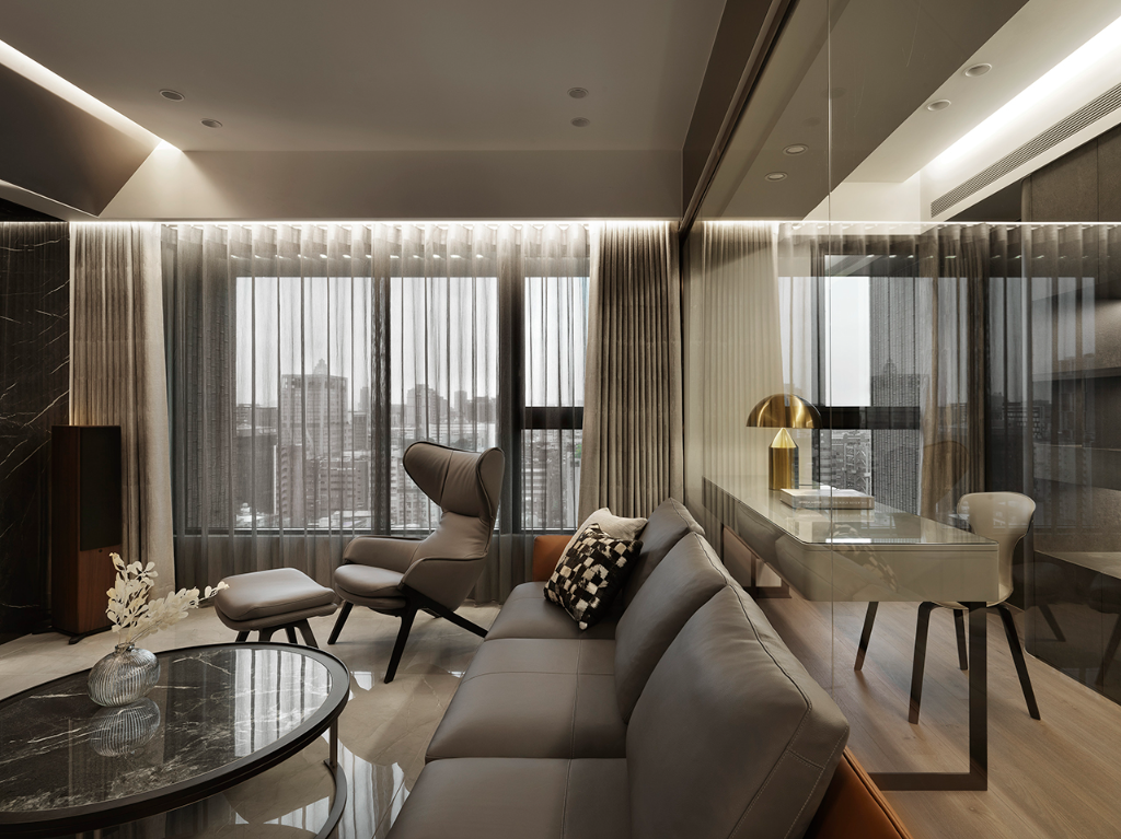 綜合上述諸多看似輕描淡寫的設計細節,使本案不僅止於視覺的美學,更昇華為一種可被感知的體驗,抑是一場由光、影、材質與時間混搭而成的感官盛宴。於是居住這一簡單行為在不知不覺中成為藝術與美學的對話,而那份滲透在每個角落的溫潤質感,終將時光淬煉為永恆的經典篇章。