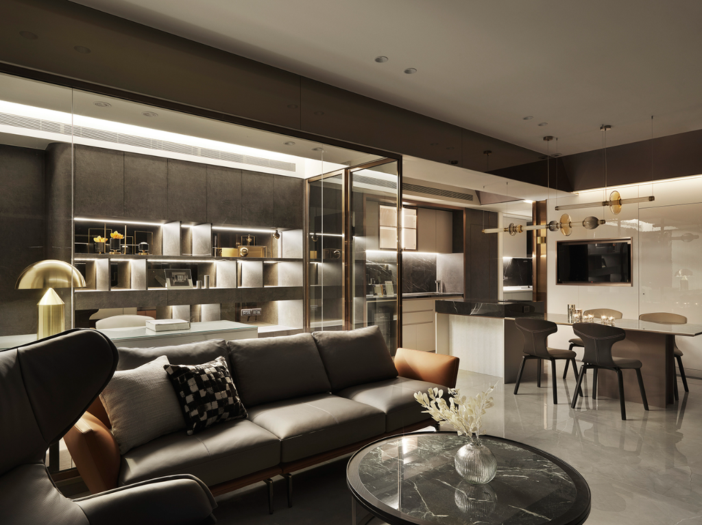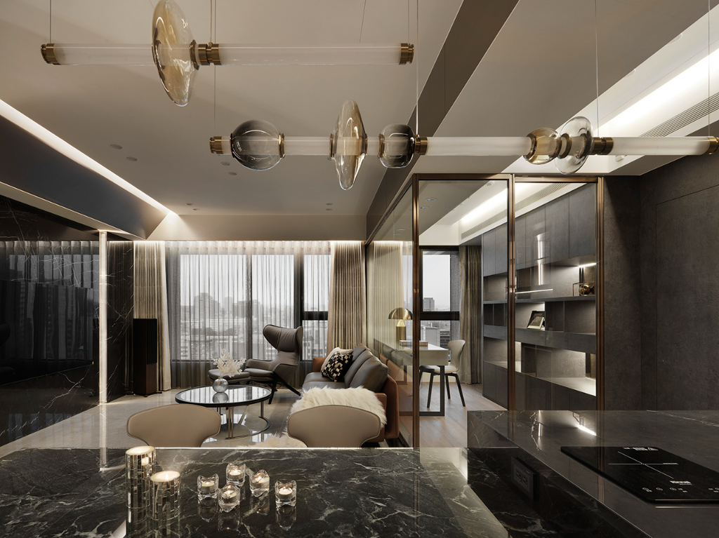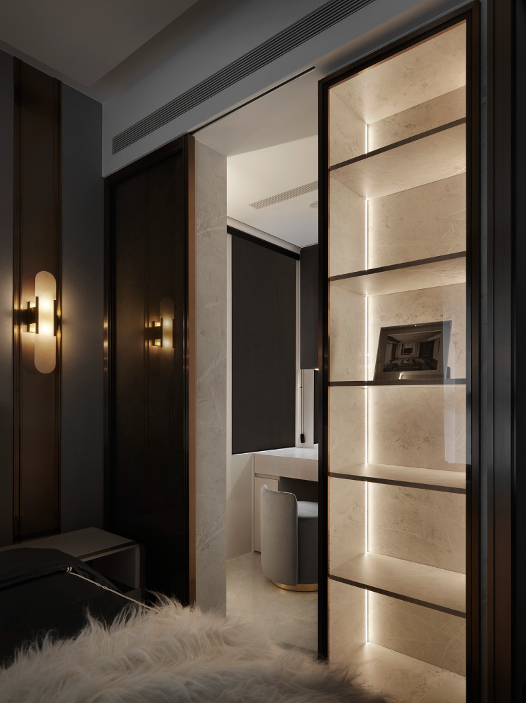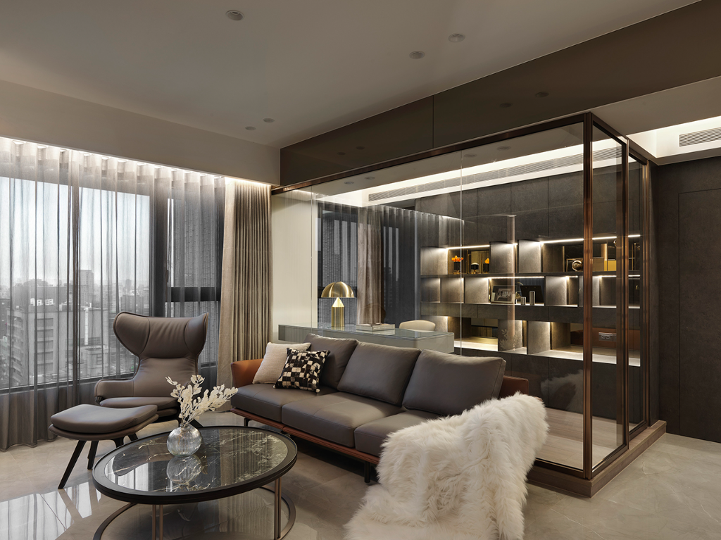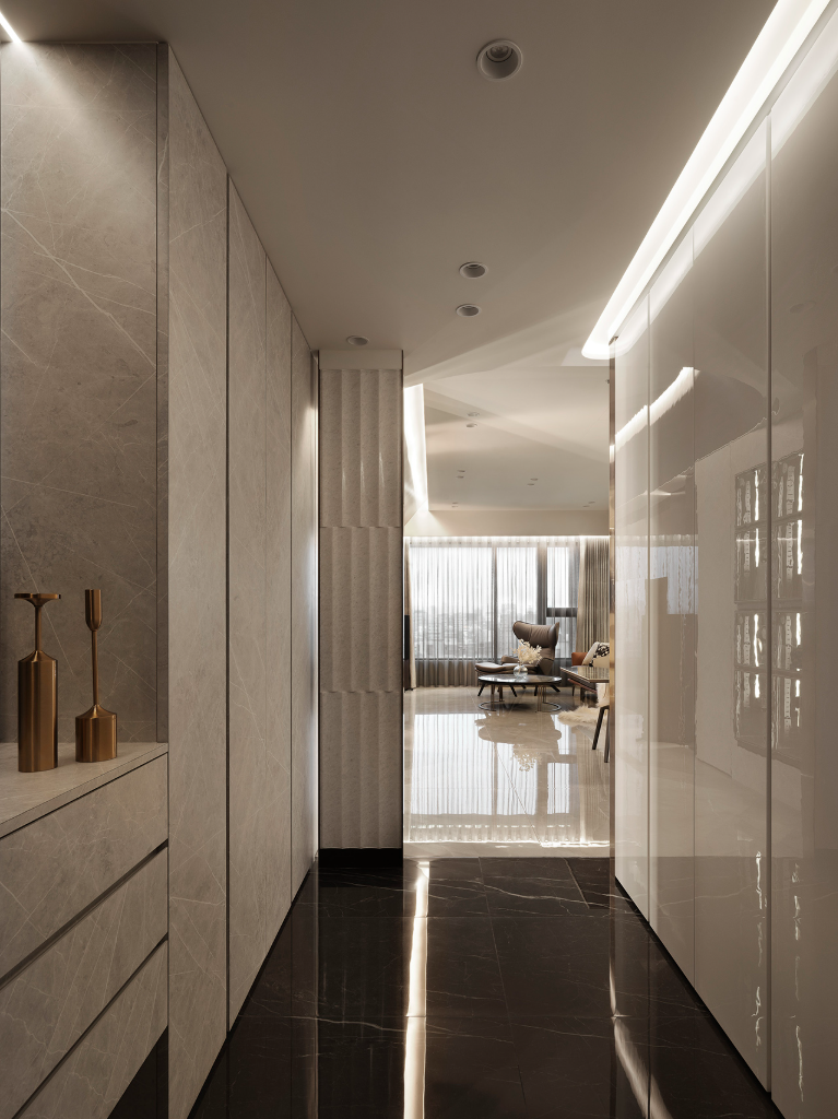 綜合上述諸多看似輕描淡寫的設計細節,使本案不僅止於視覺的美學,更昇華為一種可被感知的體驗,抑是一場由光、影、材質與時間混搭而成的感官盛宴。於是居住這一簡單行為在不知不覺中成為藝術與美學的對話,而那份滲透在每個角落的溫潤質感,終將時光淬煉為永恆的經典篇章。