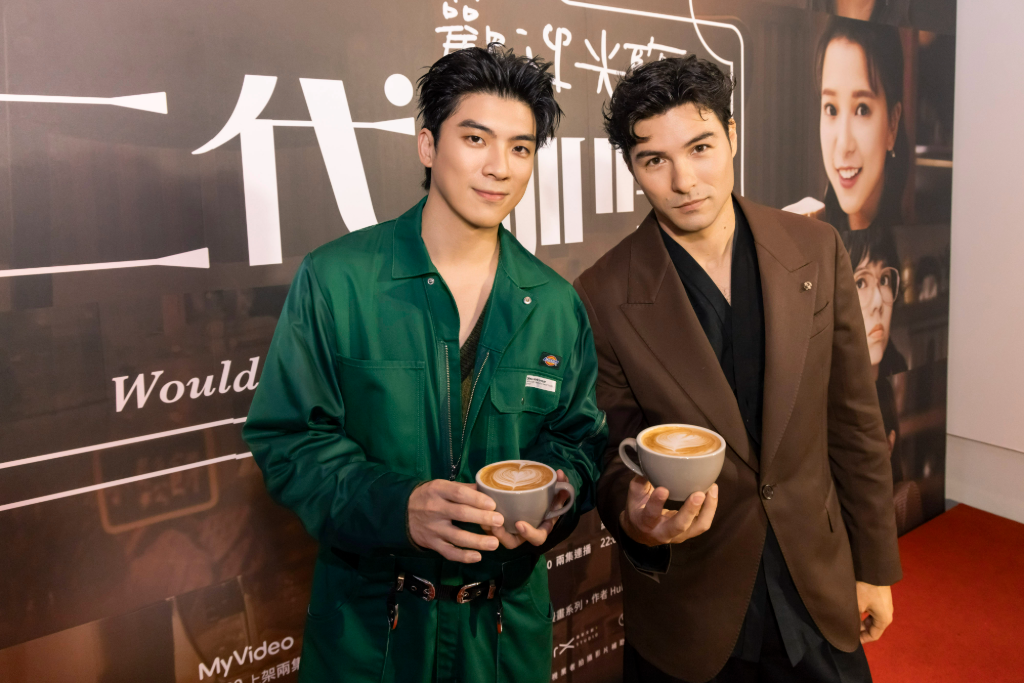 ▲ 鳳小岳(右)、林哲熹師徒較勁,現場露一手「咖啡愛心拉花」,應景白色情人節。。(圖:甲普國際媒體)