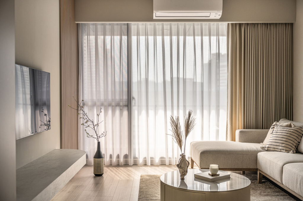 得益於本案先天優良的採光條件,屋主計劃未來陸續添購植栽,讓居家更顯綠意盎然。沈宏杰總監已預留適合擺放植物的位置,特別是客廳主牆旁的格柵設計,未來將成為植物的最佳背景,讓自然與人文在此交融,令這處24坪的小天地完美詮釋「結廬在人境,而無車馬喧」的意境,成為繁忙都市中難得的愜意之地。