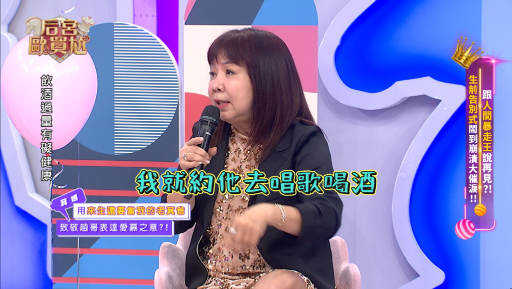 ▲ 康茵茵致敬趙正平人生見好就收就好,爆料他容易在酒後出事。(圖:東森超視)