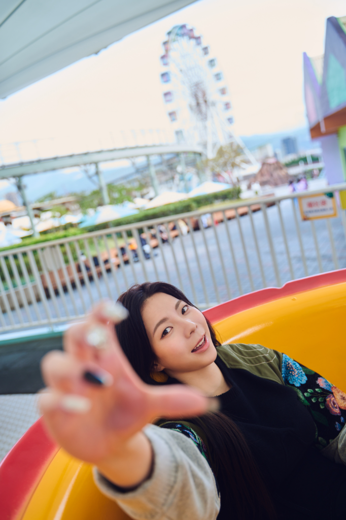 Yohee又熙挑戰坐上「高速旋轉咖啡杯」拍攝〈旋轉咖啡杯〉MV。(圖:索尼音樂)