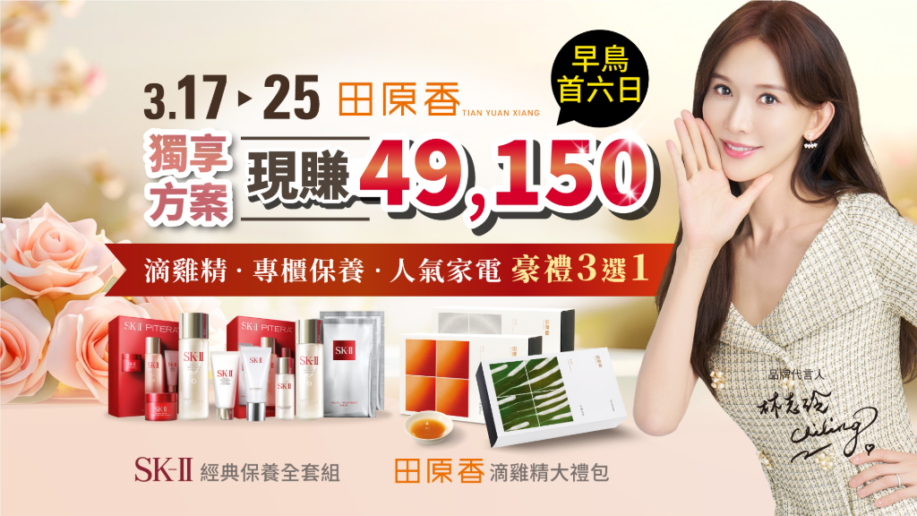 想要拯救工作績效,擊退昏沉、無痛喚醒好精神?現在就是入手好時機,田原香春季優惠下看75折,滴雞精大禮包/專櫃保養品SK-II、雅詩蘭黛/人氣家電開飲機、電子鍋眾多澎派好禮任你選,優惠只到3/25:https://pse.is/78sp4b
