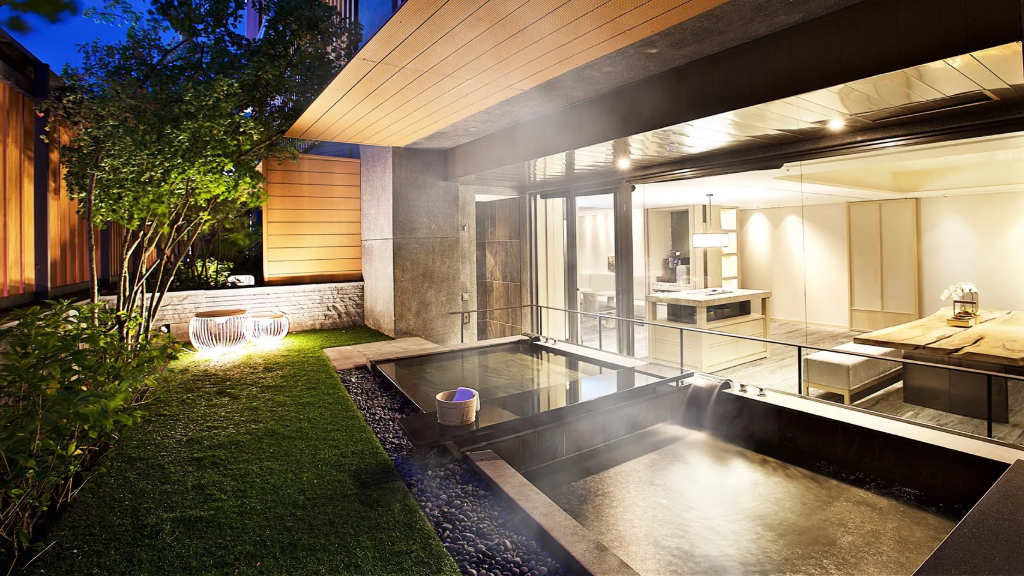 礁溪晶泉丰旅具有120間具設計感的客房,每間客房皆設置「半露天景觀湯池」,旅客可輕鬆自在享受質滑的弱鹼性碳酸氫鈉泉滋潤,溫熱泉湧、裊裊輕煙、光影虛實,緩慢的旅人心境,應運而生。頂樓更坐擁全台最美的北台灣第一座頂樓「露天無邊際溫泉泳池」及「露天電影院」設施,一邊欣賞電影,一邊居高臨下享受礁溪市區燈火通明及遠眺龜山島的百萬夜景,人生最享受莫過於此。