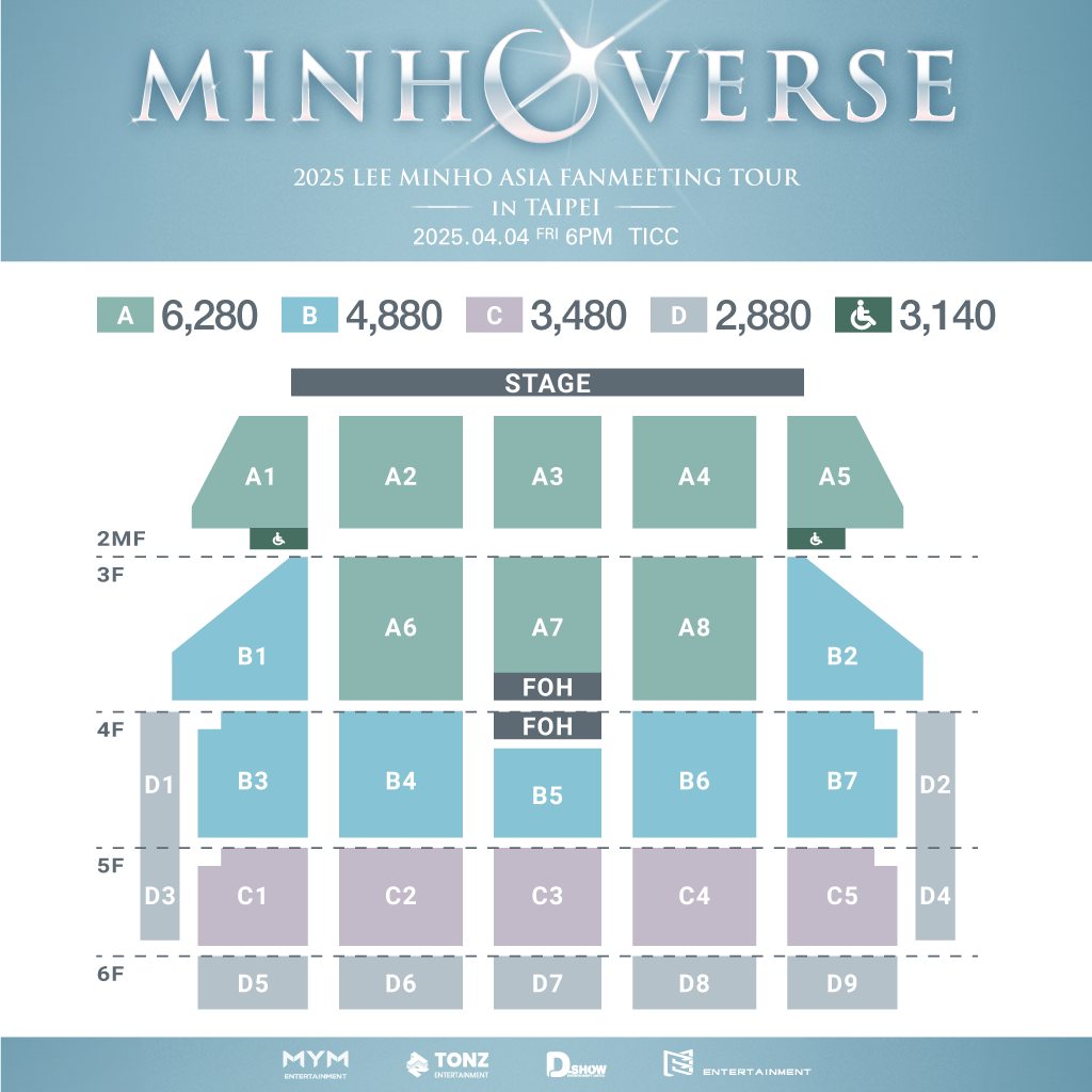 活動票價:A區$6,280 / B區$4,880 / C區$3,480 / D區$2,880 / 身心席NT$3,140 (全區對號入座)