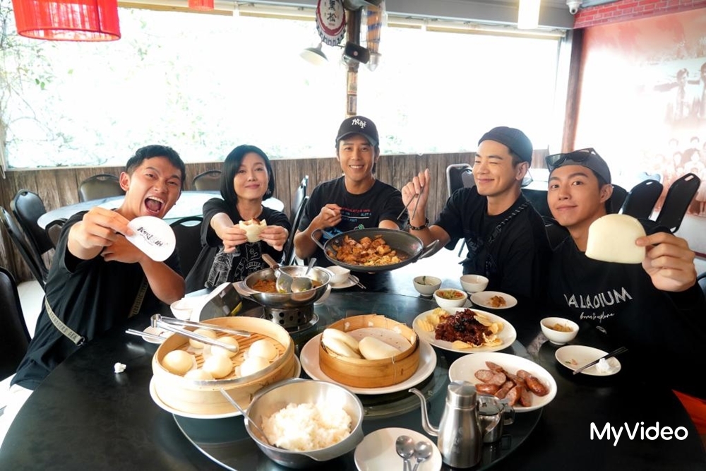 ▲ 蔡昌憲(左1)、苗可麗(左2)、胡宇威(中)與蔡凡熙(右1),讓禾浩辰(右2)大讚是最強戰隊。(圖:台灣大哥大MyVideo)