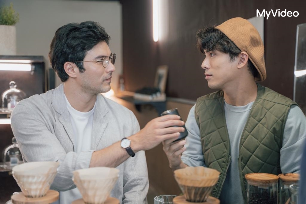 ▲林哲熹(右)在《歡迎光臨 二代咖啡》拜咖啡大師鳳小岳(左)為師。(圖:台灣大哥大MyVideo)