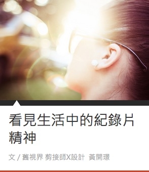 拍攝紀錄片也是一個藉由別人的生命去了解自己的過程, 它讓我了解什麼才是人,我們應該往哪去, 看盡不同人面對事情的喜怒哀樂, 看盡各種人與人之間相處的悲歡離合, 它可以讓我在短時間內歷練好幾段不同人的重要人生。 常常聽見觀眾說看了紀錄片深受啟發及感動, 但是收獲最大的往往是創作者本身...閱讀全文 |