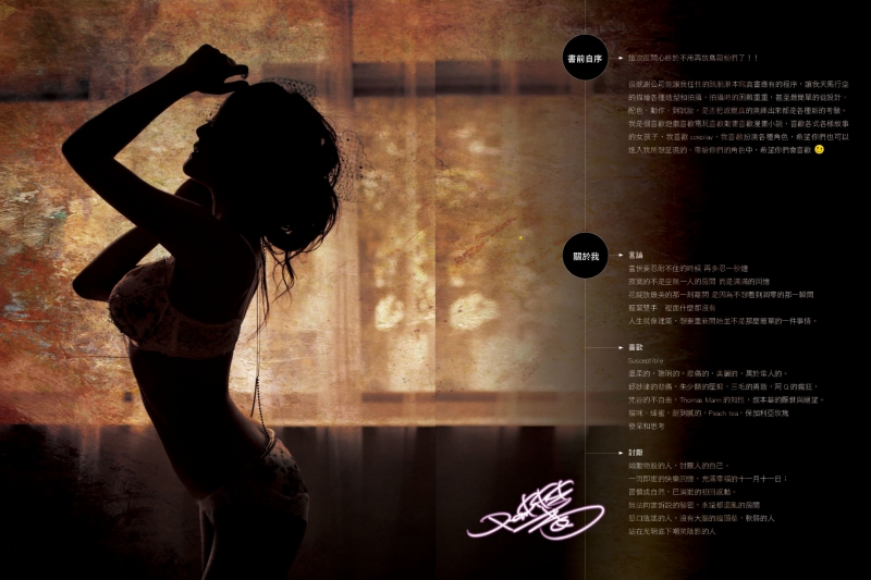 我是個喜歡遊戲喜歡電玩喜歡動畫喜歡漫畫小說,喜歡各式各樣故事的女孩子,我喜歡cosplay,我喜歡扮演各種角色,希望你們也可以進入我所想呈現的、帶給你們的角色中,希望你們會喜歡; )
