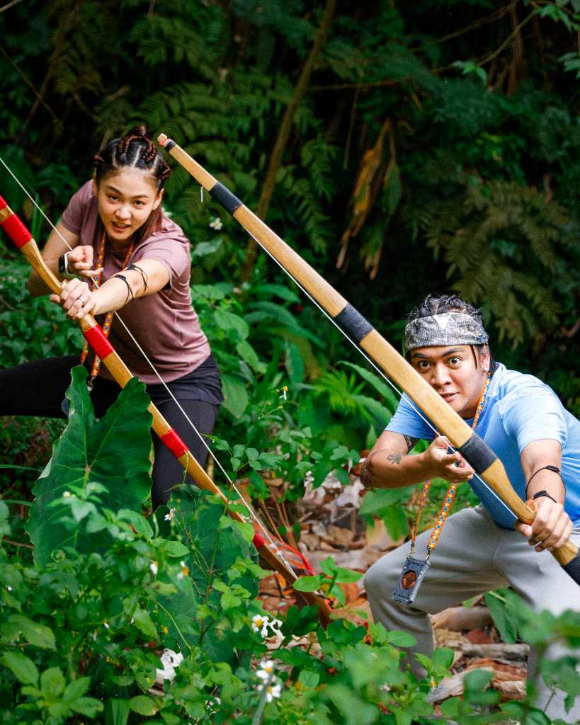 ▲ 喬瑟夫(右)化身「喬射夫」挑戰射箭。(圖:公視)