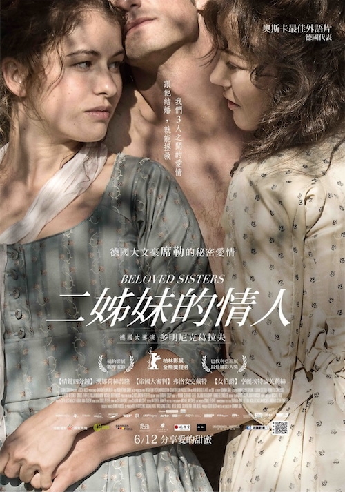 將德國大文豪席勒(Friedrich Schiller)與二位貴族姊妹纏戀一生的愛情、詮釋得絲絲入扣的電影《二姊妹的情人》(Beloved Sisters),不僅獲選2015奧斯卡最佳外語片德國代表,也以其詩情愛意,獲邀為今年「台北文學.閱影展」的開幕片。該片是德國作者導演多明尼克葛拉夫(Dominik Graf)的最新精心大作,全片耗資近三億台幣製作,取景地點則涵蓋德國曼漢姆、圖林根、北萊茵等地,甚至奧地利,全片風光美不勝收!