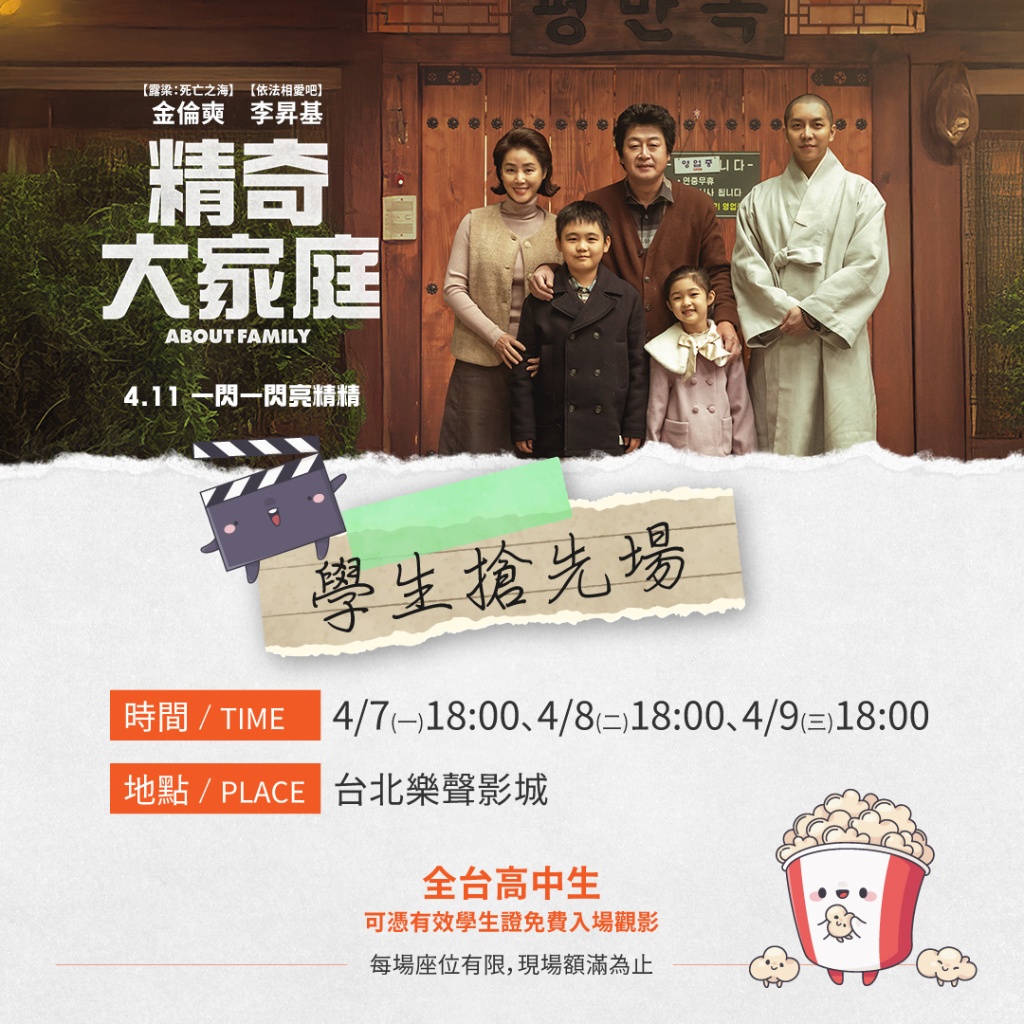 《精奇大家庭》台灣上映前,將於4月7日、8日、9日一連三天每晚6點,於西門町樂聲影城舉辦「學生搶先場」與「特別公益場」,讓更多觀眾能夠提前感受這部溫馨動人的電影。「學生搶先場」開放全台灣高中生免費觀賞,凡持有效學生證即可入場,每場座位有限,額滿為止,期盼高中生們能夠共襄盛舉,一同體驗電影帶來的感動。同時,也安排「特別公益場」,邀請勵馨基金會、家扶基金會及中華育幼機構兒童關懷協會的資助者、社工、孩童與家長們一同觀賞。電影中關於家庭與親情的核心價值,也與公益場的初衷相契合,期望透過這次的活動,帶給受顧兒童與家庭溫暖與啟發,邀請各界共度這場充滿感動與歡笑的電影時光。