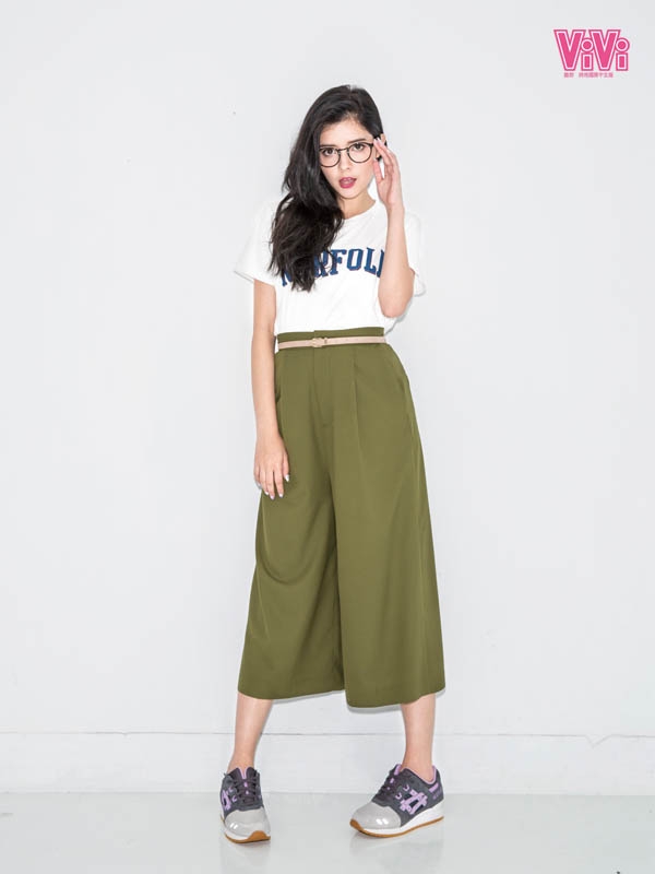 一定要Get一件的寬版褲子是今年的定番單品,選擇具有飄逸感剪裁帶入些許空氣感讓休閒氣氛提升,搭配基本T恤就完成最當季的造型。 Logo T NT.1300/KBF 卡其飄逸八分寬版褲 NT.4540/Ray BEAMS 細腰帶 NT.1180/DURAS 眼鏡 價格電洽/Chu accessory 紫×灰配色運動鞋 價格電洽/ASICS