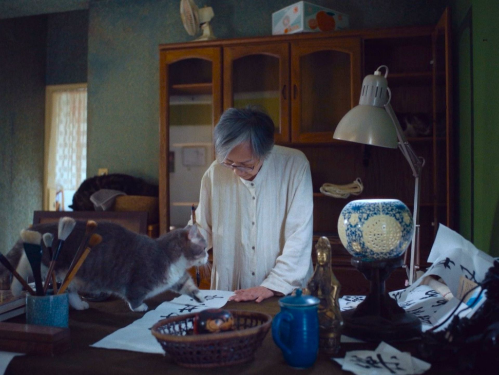 ▲ 陸弈靜飾演中文系退休教授劉惠,書法寫到一半被貓踩過。(圖:公視)