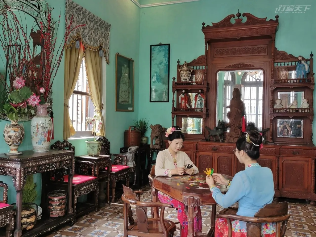 ▲ 想更深入認識娘惹文化,不妨前往檳城僑生博物館(Penang Peranakan Museum),踏入這座19世紀富商的宅邸。雕花木門、手繪瓷磚與歐洲水晶吊燈交織出華貴氛圍,遊客還可換穿娘惹服飾遊覽,彷彿穿越至英殖民時期的檳城。