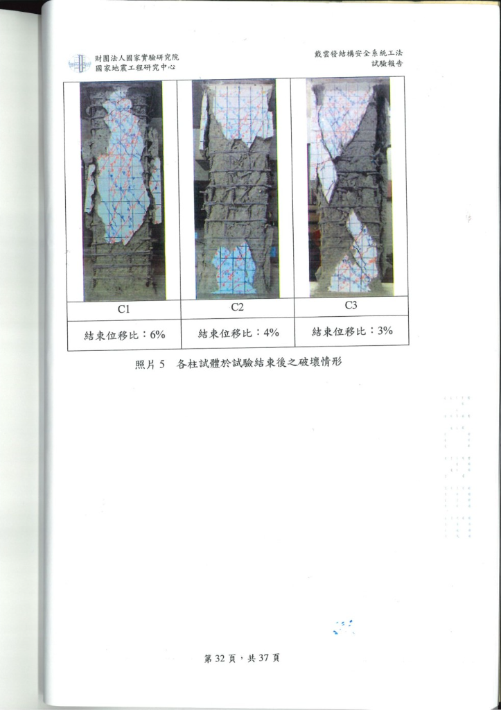 左圖C1為柱中柱試驗體試驗後柱體仍為完整狀態。圖/建築安全履歷協會提供