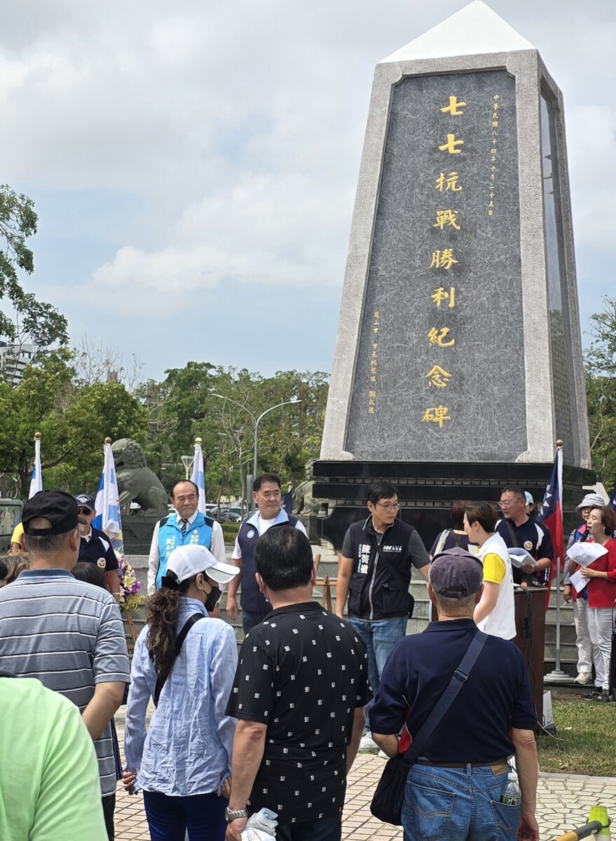 「七七抗戰勝利紀念碑」修復儀式及健行活動,19日上午在鳳山南京路、國泰路上的「七七抗戰勝利紀念碑」現址舉行,現場聚集超過數百位民眾參與這場盛會,民眾無懼艷陽高照,一起來見證紀念碑的修復儀式,國民黨高雄市黨部主委柯志恩也特別到場表達支持,現場民眾更高唱中華民國國歌,感念當年為國犧牲的英勇戰士。