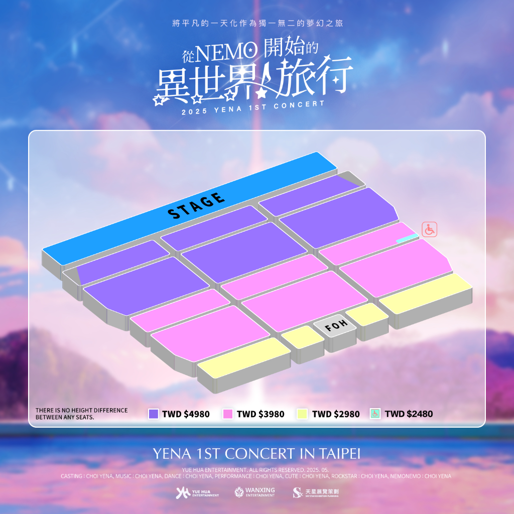 - 門票售價:TWD $4980 / $3980 / $2980 / $2480(身障席)