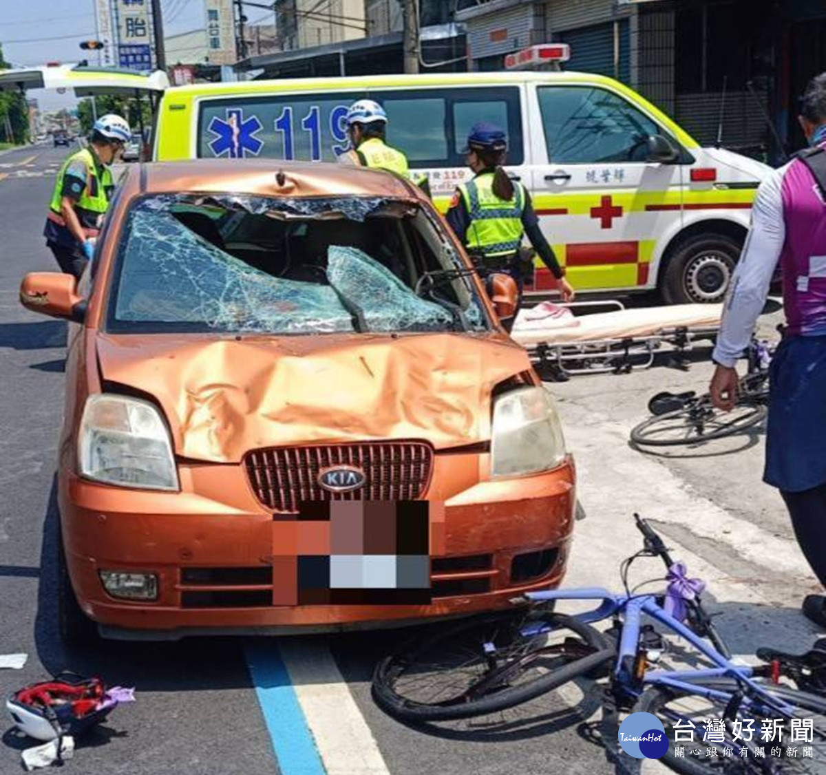 彰化縣消防局今天上午10時43分獲報,埤頭鄉彰水路發生自行車與自小客車車禍,有多人受傷;警消人員獲報趕抵,發現數名學生全身多處擦挫傷,部分學生衣物磨損、安全帽脫落,其中2名16歲的顏姓、陳姓男學生傷勢嚴重、滿身鮮血,被送到衛福部彰化醫院,所幸全員意識清醒,無生命危險。而校方也派員趕赴現場,並通知家長協助後續事宜。