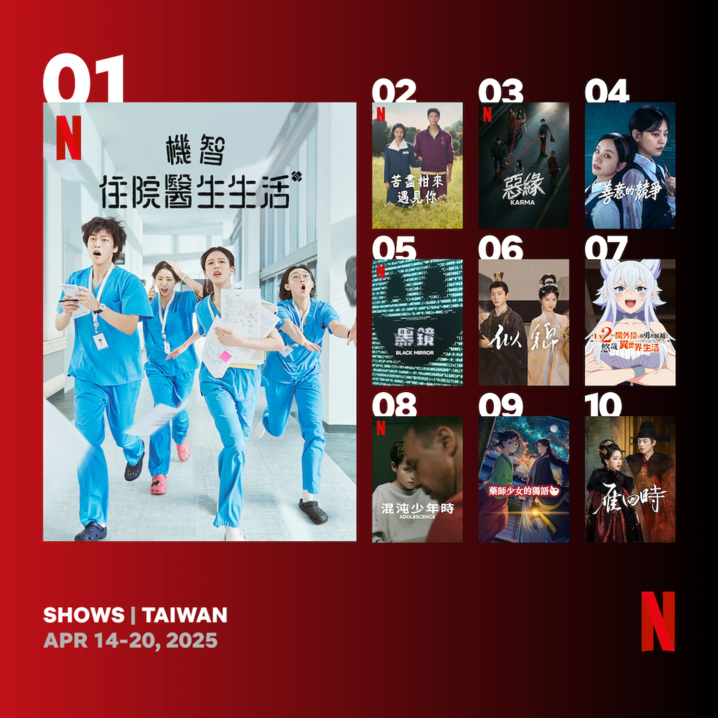 ▲ Netflix《機智住院醫生生活》登全球非英語影集排行榜第3名,台灣排行榜冠軍。(圖:Netflix)