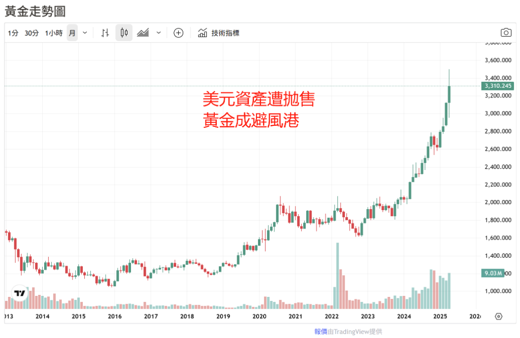 如果聯準會淪為政治工具,屈服於政治壓力而不顧通膨風險大幅降息,將導致美元貶值、實際利率崩塌,進而推動金價飆升。