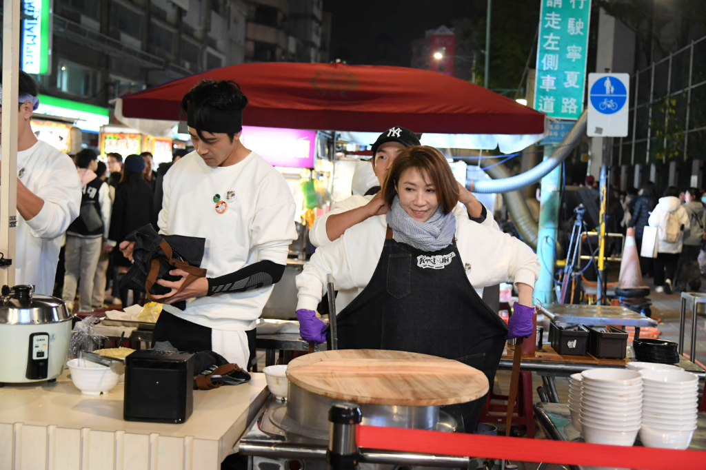 歌后李翊君難得參與實境節目,不僅與攤主們一同出勤擺攤,更時不時開嗓演唱炒熱現場氣氛。苗可麗打趣說:「有李翊君在,這一攤絕對人氣滿滿!」李翊君則幽默回應:「今天我只負責唱歌和喊『麵線來囉』,其他交給你們啦!」而在備料時現場也充滿了暖心時刻。藝人澎恰恰突襲探班,親手送上豆花慰勞辛苦的攤主們,還主動捲起袖子幫忙,被大家直呼「最暖前輩」。當晚,寧夏夜市現場排隊人龍綿延數十公尺,李翊君見狀立刻拿起大聲公維持秩序,高喊:「美食值得等待!」更令人感動的是,蔡昌憲的老婆特別帶著兩個孩子來探班,三人突如其來現身攤位前,讓蔡昌憲抱著小孩賣力吆喝,他對著鏡頭開心喊話:「這次就靠你們幫爸爸撐場啦!」