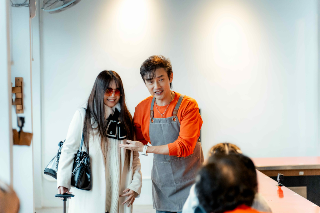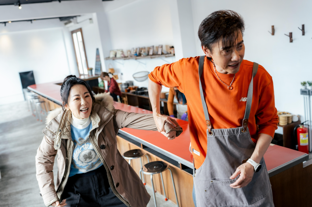 ▲ 愛妻驚喜探班,包偉銘眼冒愛心慘遭檢討:「老婆一來工作都不做了!」。(圖:好看娛樂)