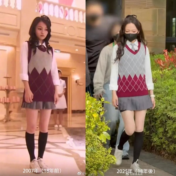 張韶涵過去主演經典偶像劇《公主小妹》皇甫珊一角,甜美造型令人印象深刻,在當年火紅一波!時隔18年,現年43歲的張韶涵再扮經典貴族學生制服造型,換上白襯衫、紅灰菱格紋背心、百褶短裙、及膝長襪,就連髮型也復刻,讓人再度讚嘆張韶涵太會保養,有夠凍齡,讓粉絲宛若夢回2007年,直呼「青春回來了」、「記憶中的小麥小姐依舊一模一樣」!