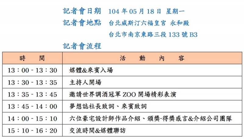 夢想誌陳懿茱社長表示,頂級豪宅圓夢計畫這個平台是屬於所有豪宅的業主們,也是業界首次以公開徵選設計師的方式發表,為豪宅業主們徵選最優質的設計團隊,展開百坪豪宅主人的夢想計畫!