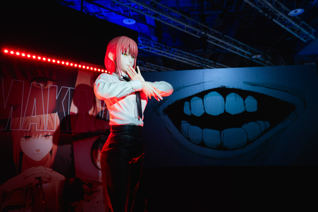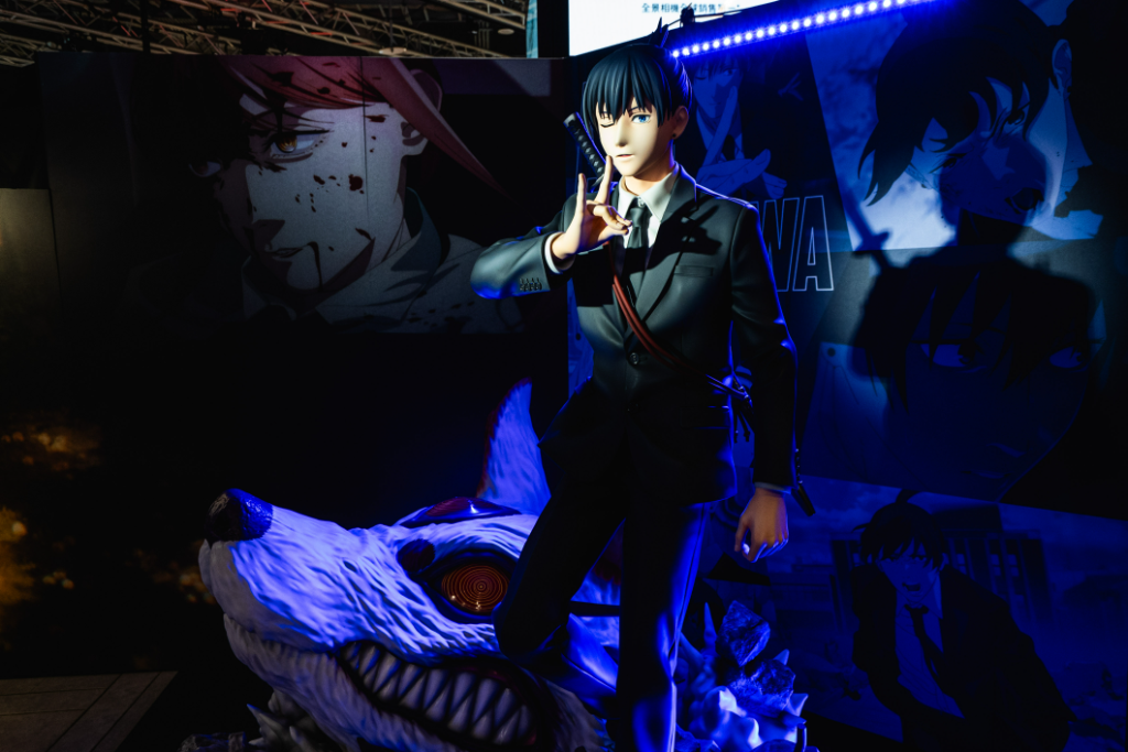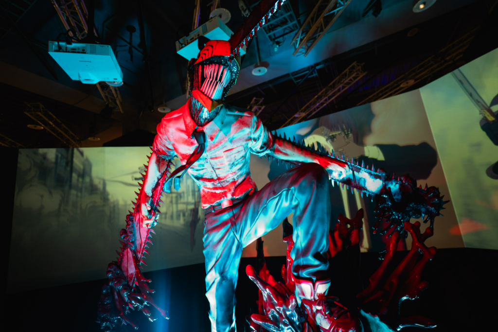 鏈鋸人主角群具象化現身!等身大小的角色模型搭配現場動態聲光效果,彷彿闖入《鏈鋸人》動畫世界,浴血的熱血震撼感重現眼前,包括淀治、帕瓦、早川秋及真紀真帥氣精緻的模型,那股暗黑與魔幻交織的大快人心,在這裡被放大到極致——真的讓人不寒而慄,卻又忍不住一直看下去!