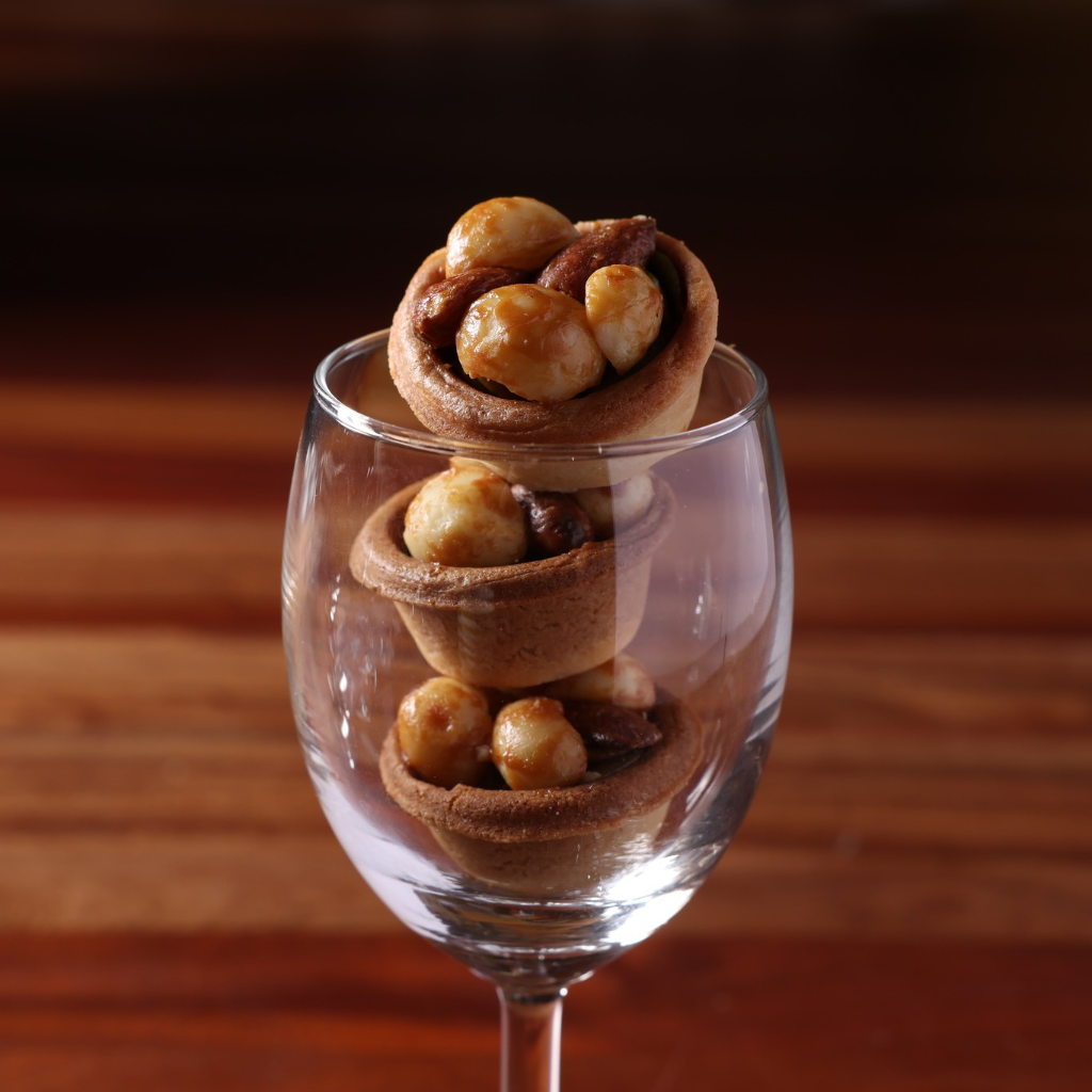「堅果塔」以手工塔皮為基底,搭配低糖版火星糖與各式堅果,不僅口感酥脆,糖份更低;