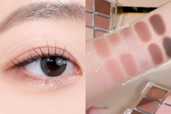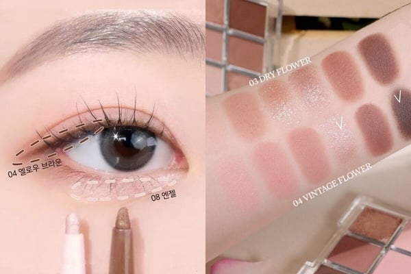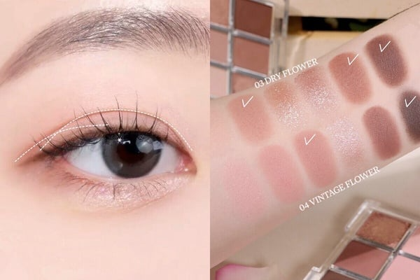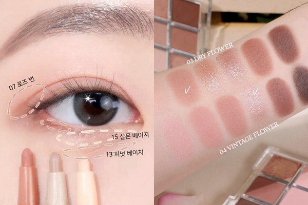 最後,可以再用眼影的淺色及中間色調加強下眼影,順著下眼瞼臥蠶部位描繪出輪廓感,再稍微銜接眼尾ㄑ字部位即完成,眼妝不僅乾淨清晰、而且柔柔霧霧的輪廓感仙氣十足,內雙也不用擔心吃妝問題、一定要試著畫畫看!
