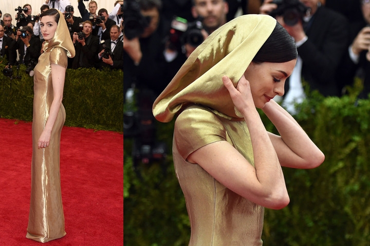 安海瑟威一襲金色裝扮: