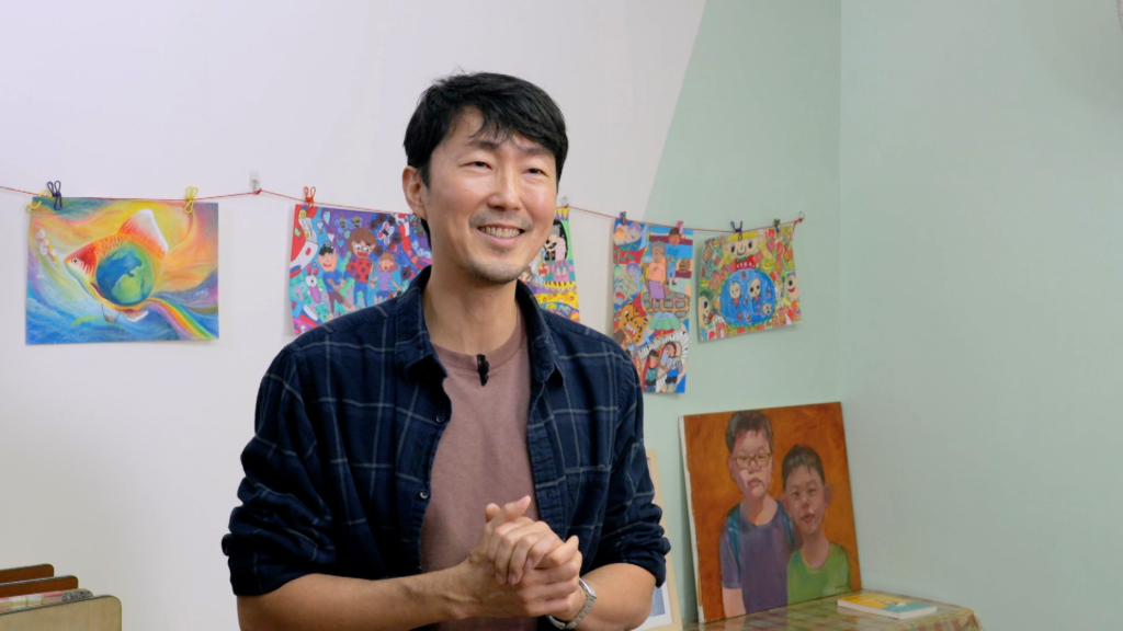 ▲ 馬大元帶太太畫作送給受訪家庭。(圖:公視)