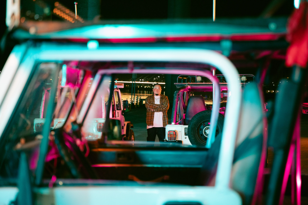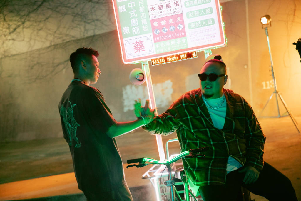 〈NONO〉MV團隊特別打造三人專屬場景拍攝,用摩托車、交友車等去區分三大塊場地,其中最吸睛的美術設計莫過於重現西門町傳奇交友車。拍攝過程中瘦子還發現交友車「匿名聊天,電話交友」的看板,上面寫著的手機號碼,笑說:「我的手機號碼在這裡誒,木柵陳先生」。而聊到近期最想SAY
