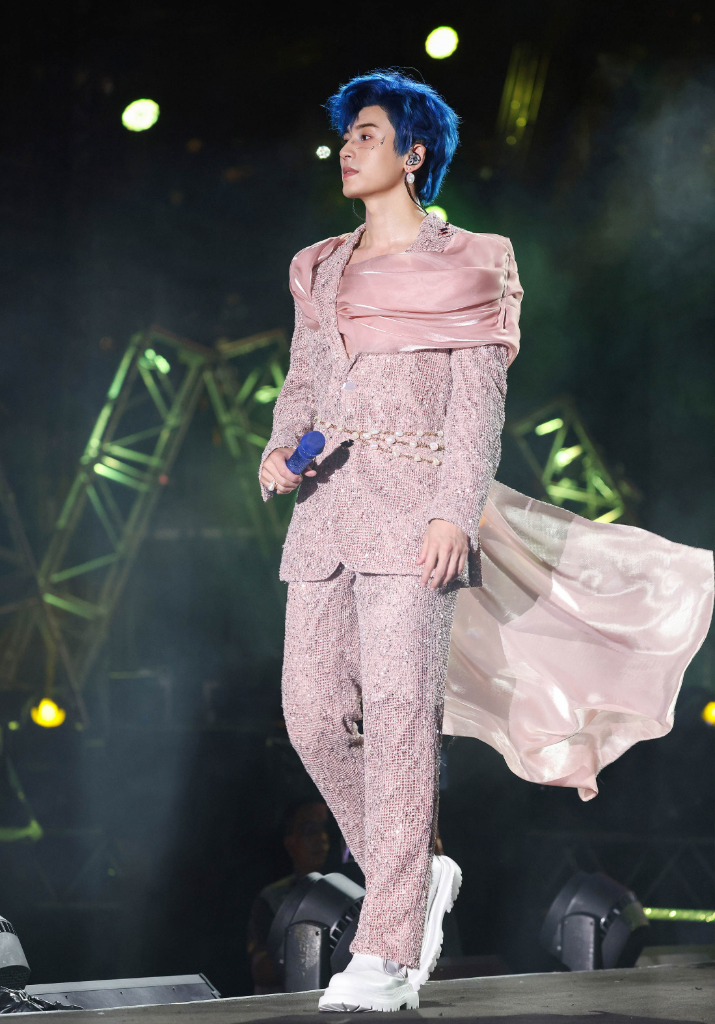 當演唱會進入尾聲,現場氛圍轉為舒緩柔和,張哲瀚身著淺粉色西裝套裝出場並緩緩走向延伸台,上衣前領處特別搭配了同色系綢緞飄帶,在晚風的吹拂下,飄帶於身側輕柔飛揚,他與台下觀眾朋友共唱《冰川消失那天》、《Moonlight》,留下專屬於彼此的夢幻時刻。