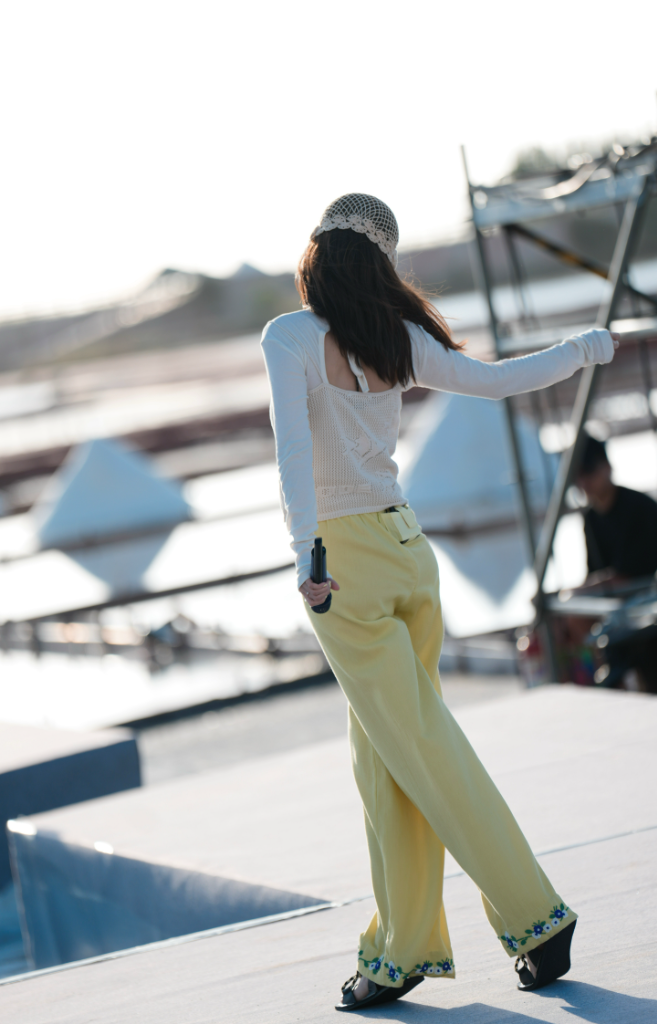 ▲ 田馥甄仙氣飄飄,置身在一格一格的瓦盤鹽田裡。(圖:何樂音樂)