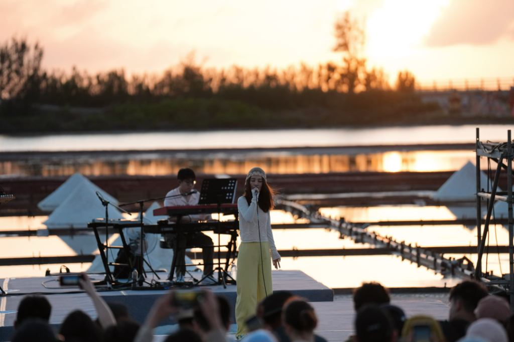 感受到台南鹽田的質樸,舞台旁小鹽山矗立漂亮又可愛,當地人的熱情給予,田馥甄傾訴籌備甘苦:「田調很難,但沒想那麼難。有時候覺得自己是拿石頭砸自己腳。」連田媽媽都來關心這演出到底是誰想出來要辦的,得知是她自己後驚呼:「妳真的很大膽!」