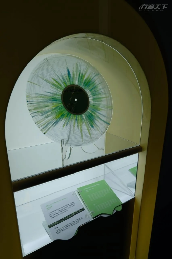 位於美術館4至6樓的廊道空間,策展以聲音為主題,展現其超越聽覺的視覺轉譯。聲音藝術家蔡瑋德以宛如大眼睛的放送器播放10首環境音樂,涵蓋自然觀察、植物聲響與田野錄音,融合多樣質地,創造出一系列有機的聲音場景,讓人坐下聆聽時彷彿也能「看見」聲音的模樣。