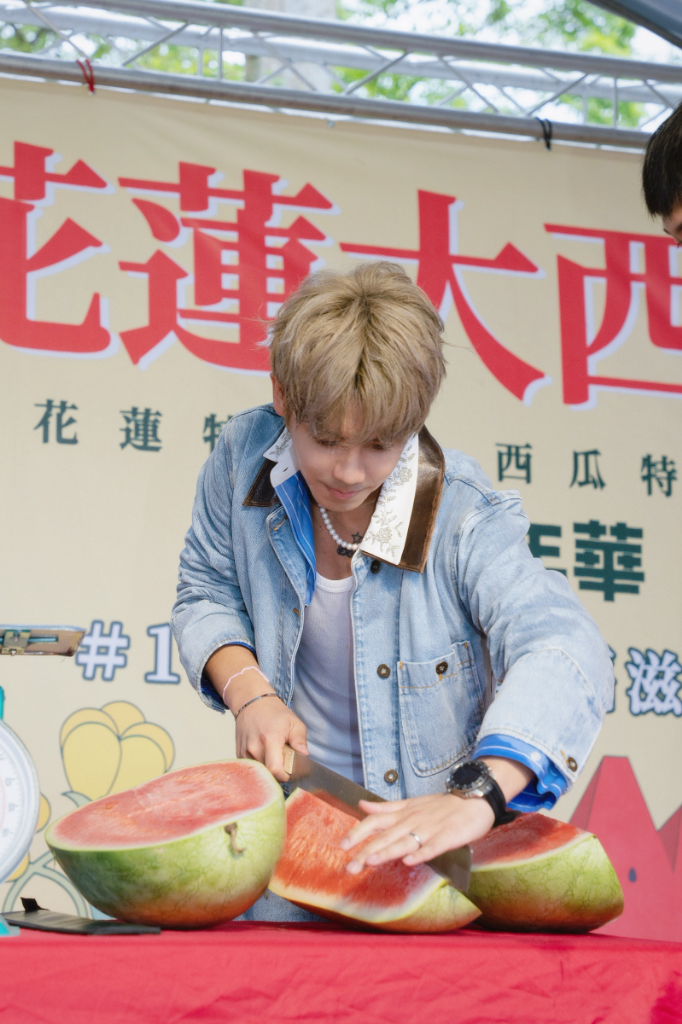 鼓鼓、白安還首次挑戰用西瓜刀切一顆完整的「大西瓜」,並將現切的西瓜分送給台下粉絲一起品嚐,台上台下人手一塊西瓜一起享用,有趣又可愛的場景為活動增添清涼的夏日氣息。兩人也分享自己與花蓮的緣份,白安近期突破自我參與實境節目《嗨!營業中》,節目中開設的餐廳地點就設在花蓮,白安說:「錄《營業中》的時候我們會在花蓮到處跑來跑去、買菜,也有一起到西瓜田裡喝西瓜汁!」