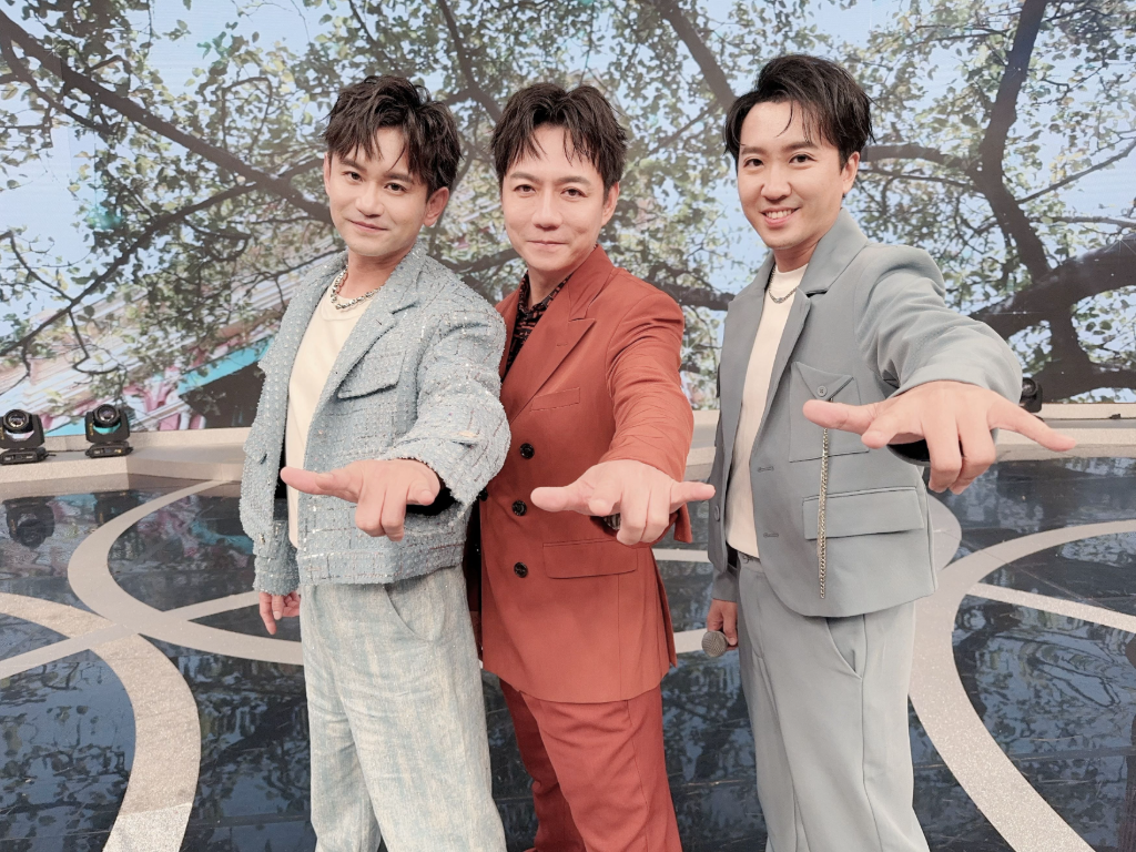 ▲ 力挺沈建豪出輯!與陳隨意、吳俊宏三人合體當小虎隊唱跳演出。(圖:豪記唱片)
