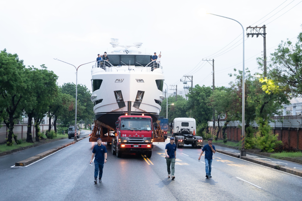 兄弟倆異口同聲敬佩造船廠及駕駛拖船卡車的師傅們,「怎麼安排這麼大一艘遊艇在路上行走,每分每寸都要計算得很精準,非常細緻的專業。」李銘忠補充說,行經路段的紅綠燈都要考量進去,必要時先拆除移開,「整個過程我都在捏冷汗」。