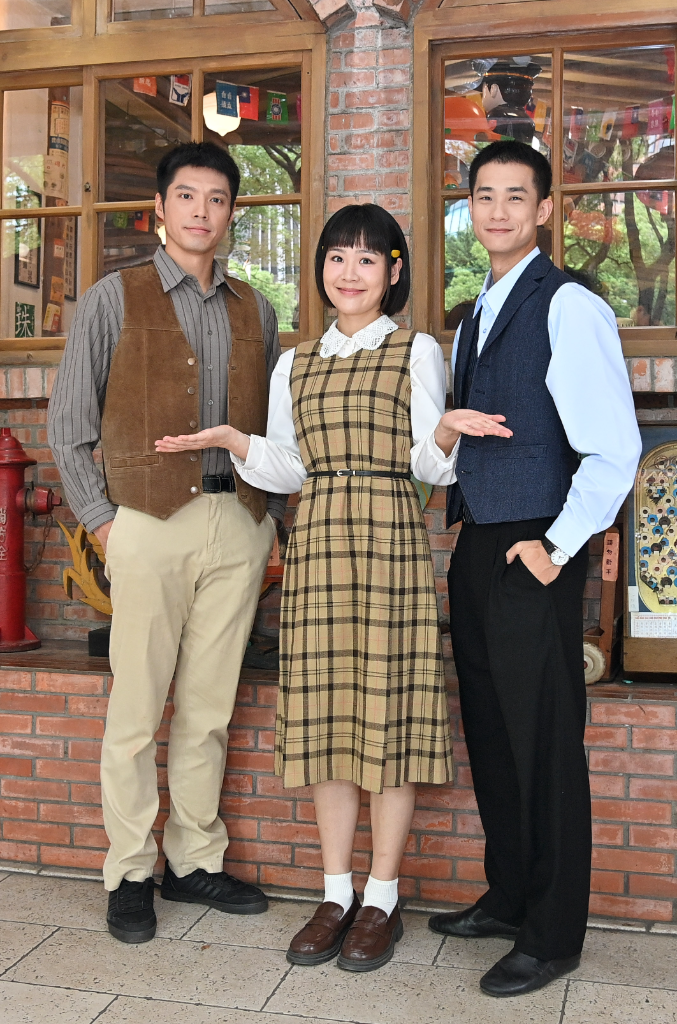 ▲ 站在男演員盧彥澤和王盈凱中間,何宜珊坦言感受到不小的壓力。(圖/台視)