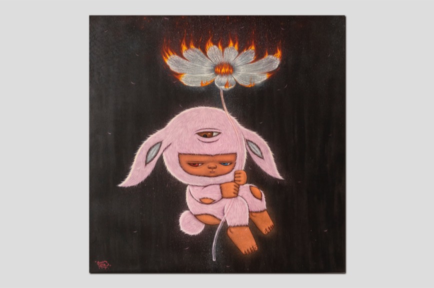 同樣備受矚目的,還有泰國當代街頭藝術家Alex FACE的作品《灼燒與護盾》以台幣283萬元成交。此作描繪其標誌性角色「Mardi」依偎在燃燒的小雛菊旁,在黑暗背景中展現出脆弱而堅定的矛盾情感,這種直白且多層次的表達,使Alex FACE深受國際藏家青睞,逐漸在國際市場中展露頭角。