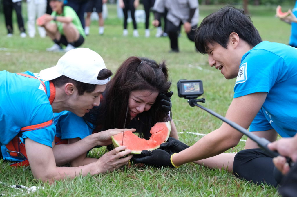 節目大玩人體拔河吃完西瓜取勝,其中啦啦隊女神凱蒂更為了獲勝,奮力啃咬西瓜,卻不慎咬傷徐新洋的手指!徐新洋痛得大叫,直呼:「還以為手指頭斷掉,好像被喪屍咬到一樣!」,徐乃麟大讚「很有運動家精神,很拼命很棒!」除了激烈的競賽,節目中也充滿「粉紅泡泡」,卞慶華和林莎組隊吃西瓜,兩人奮力向前衝,脖子甚至勒出紅痕,所幸現場皆備有救護車,緊急擦藥後並無大礙。此外卞慶華和林莎相依偎吃西瓜,讓徐乃麟羨慕大喊:「我也好想跟林莎一起吃西瓜!」