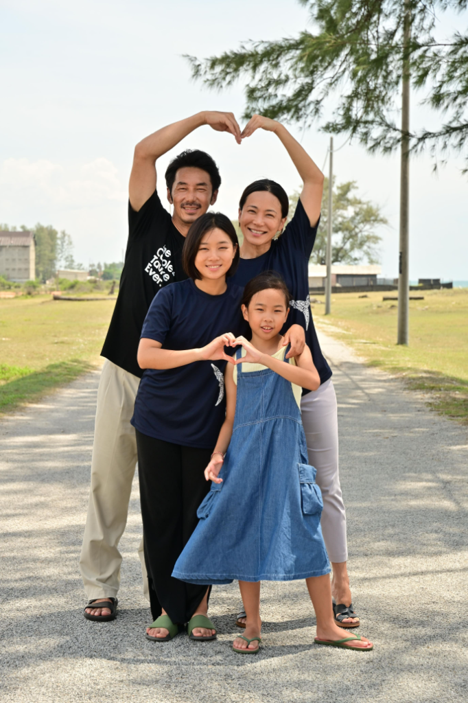 ▲ 《SAYANG沙央》中的華人家庭合照:李李仁(後排左)與王愛玲(後排右)飾演湯詠絮的父母。(圖:甲上娛樂)
