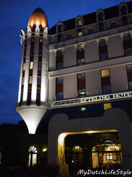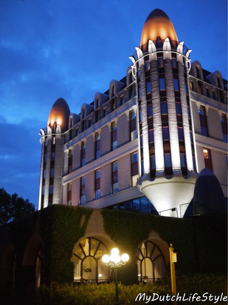 集美麗與魅力一身的城堡飯店夜景亦不容錯過,為了等待這一個夜幕,現在荷蘭晚間約8、9點過後天色才會慢慢漸層暗淡,原本穿上睡衣的我,還特地換上便服,Rory自願充當我的保鑣和我下樓來取景,就只為了拍照,晚間打了燈的城堡飯店越發亮眼,宛如穿上華服微醺的婀娜女子,浪漫典雅、閃爍動人。