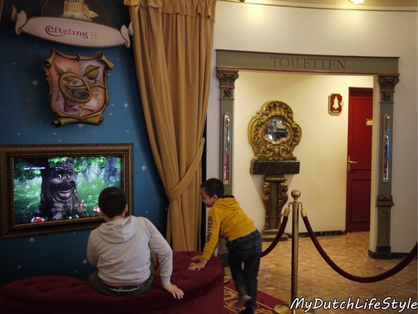 說到艾夫特琳Efteling樂園設施與其相關飯店、渡假屋...建築設計與創意,就不得不提起荷蘭20世紀著名國寶級插畫大師Anton Pieck(1895~1987)從他生性浪漫加上創作品辨識度極高的雙重風格,數以萬計的手稿、水彩畫、油畫、版畫和木雕,見證了他具大熱情與幹勁,更賦予童話世界栩栩如生的異想境界。就連飯店設計到1992年完工誕生都是追隨Anton Pieck童趣插畫精神,引圖入室,每一個室內插畫構圖、上色都錙銖計較,看似華麗壁紙,仔細一瞧,線條內都藏著童話主角嬉戲與追逐畫面,著實經典不朽延續。