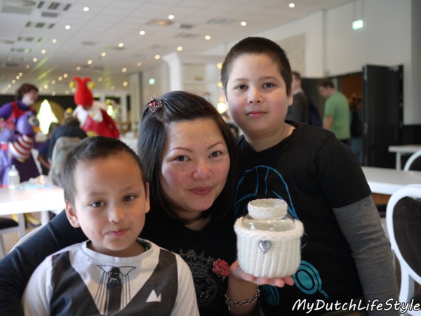 《當天恰巧是母親節~收到Rory親手編織的毛線玻璃罐禮物,Love it !》